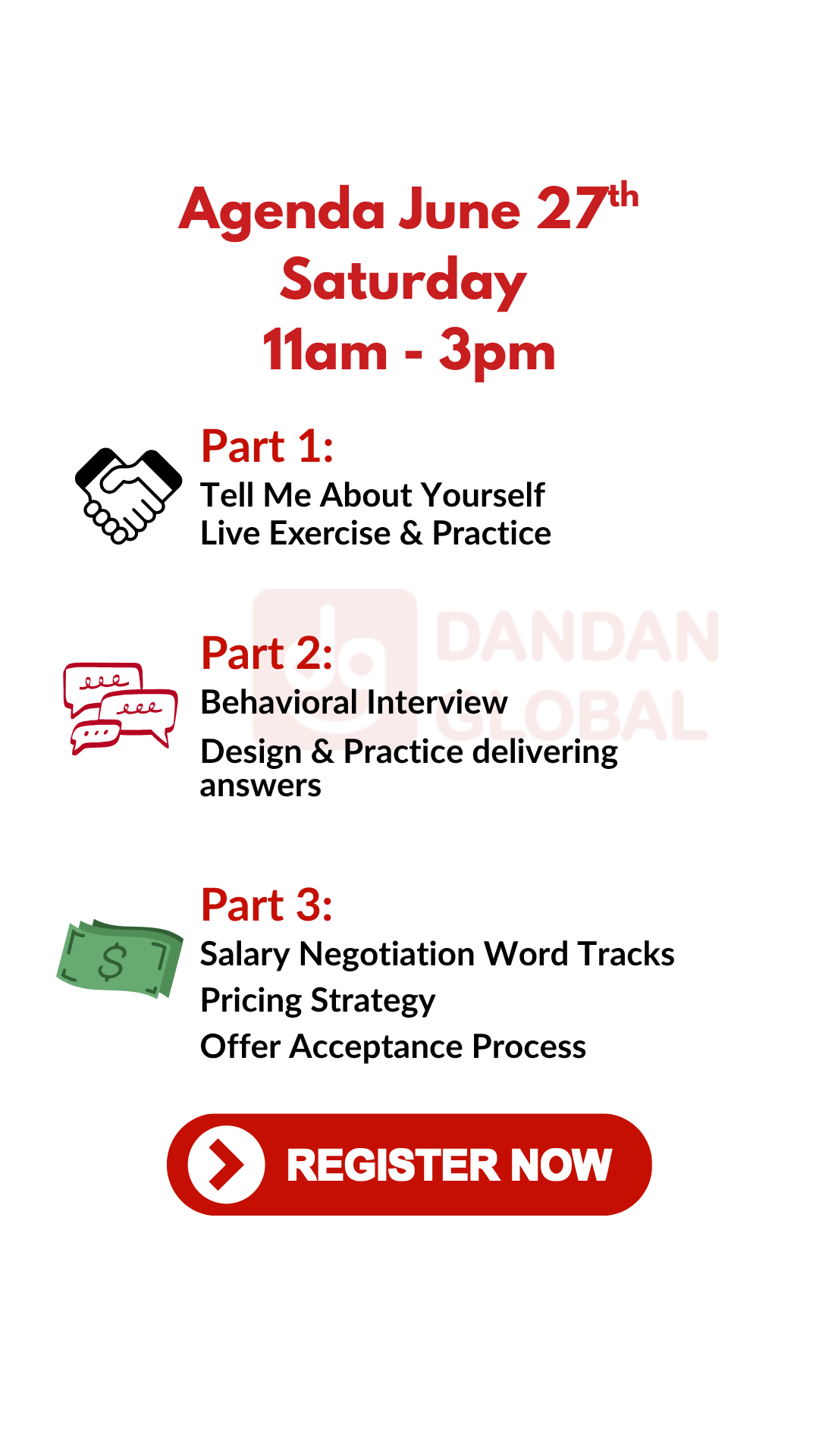 I will teach you exactly how to sell yourself to employers, beginning with self-intro, behavioral interviews, and salary negotiation and acceptance.
